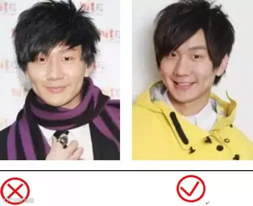 1、看五官:五官偏大,穿夸张的;五官偏小,穿内敛的。(如图中所示)