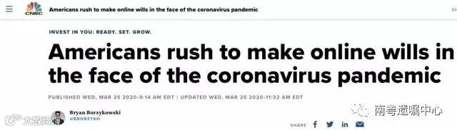 面对凶猛疫情,美国全国各地都开始在网上争先恐后立遗嘱。来自美国媒体CNBC的报道,总部位于波士顿的遗产规划公司Gentreo,遗嘱填写人数比上一周增加了143%,位于圣地亚哥的Trust&Will公司也增加了50%。