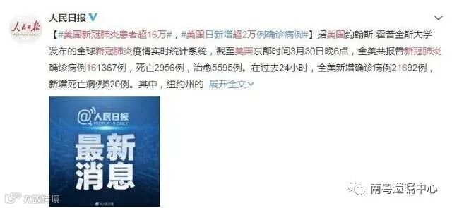 据美国约翰·霍普金斯大学发布的全球新冠肺炎疫情实时统计系统,截至美国东部时间3月30日晚6点,全美共报告新冠肺炎确诊病例161367例,死亡2956例,治愈5595例。在过去24小时,全美新增确诊病例21692例,新增死亡病例520例。其中,纽约州的确诊患者66497例,纽约市37453例。
