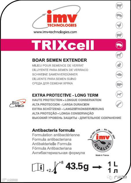 超长效保存方案可以增强精子抗氧化性和加强质膜的保护层,从而在延长精子的保存期的同时也最大限度的提升精子的受精能力。TRIXcell特配的抗生素对于降低精液细菌含量作用非常明显。经过多年的跟踪监测,证明TRIXcell在养殖场实际使用保存效果良好。