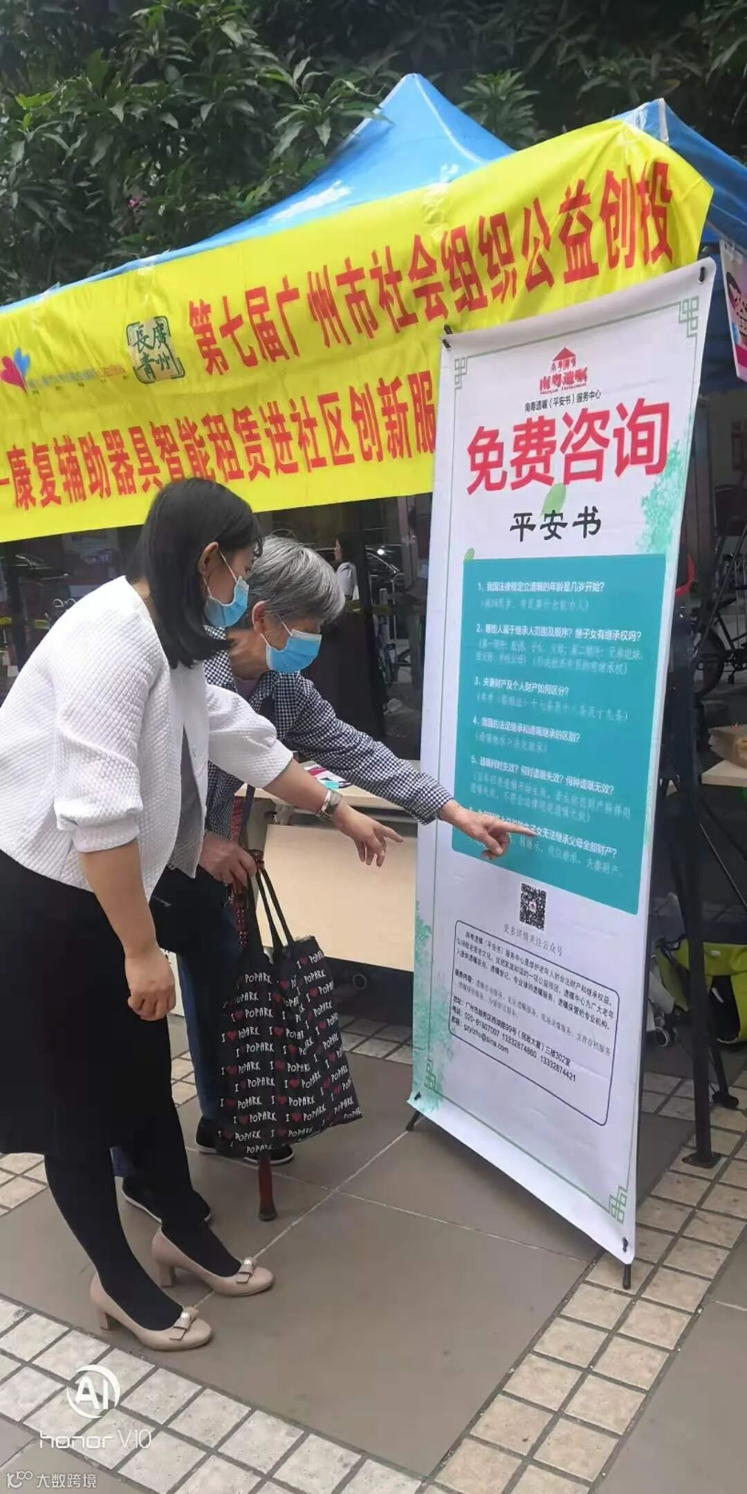南粤遗嘱中心在此次活动中为现场广大老年人宣传将于2021年1月1日施行的《民法典》婚姻家庭编有关遗嘱、继承相关法律知识,提供免费遗嘱咨询,并介绍了南粤遗嘱中心的遗嘱见证服务、现场录像服务、遗嘱登记服务、遗嘱保管服务、为爱留言服务、遗嘱继承服务等。