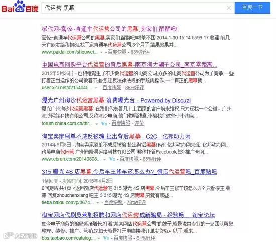 (图为:百度网页搜索“代运营 黑幕”的相关报道)