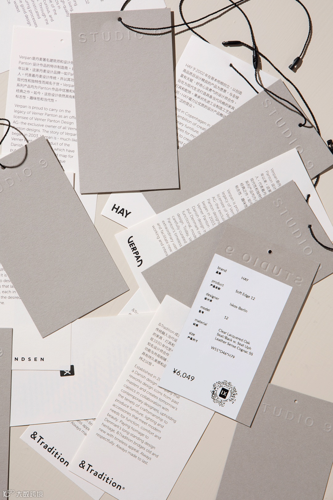考虑到实际落地的可行性,最终这个方案进行了简化,使物料尽可能满足长期使用。在产品吊牌上,我们以故事讲述的方式植入HAY、&Tradition、Verpan和Frandsen的介绍,并特别设计了一个多功能卡夹,可让消费者将店卡、产品吊牌、贴纸等物料收纳在一起,带走留存。