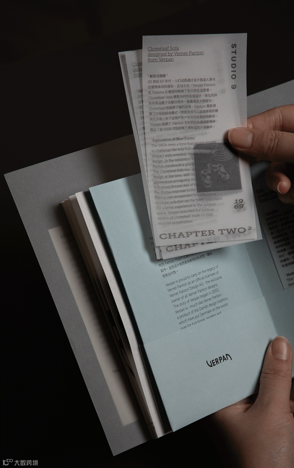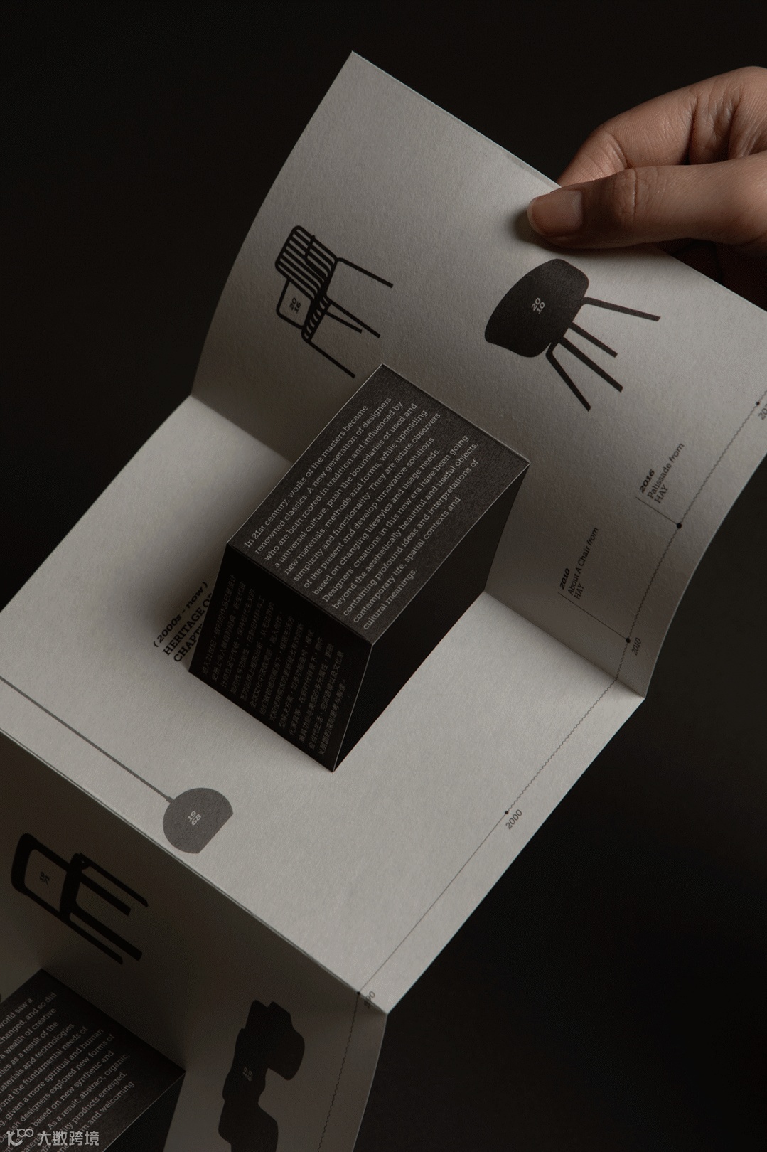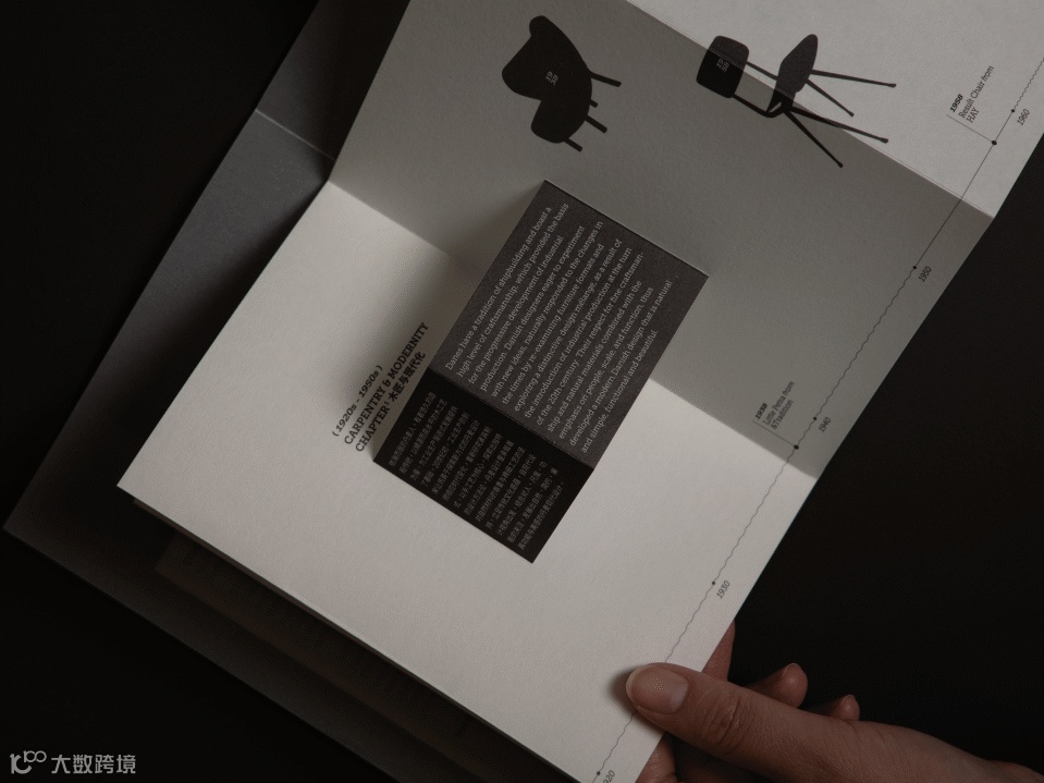 这本展册由1本手册、以9件经典设计为内容的故事卡片和若干门店物料构成。当观展者拿到展册时,它还是“未完成品”。