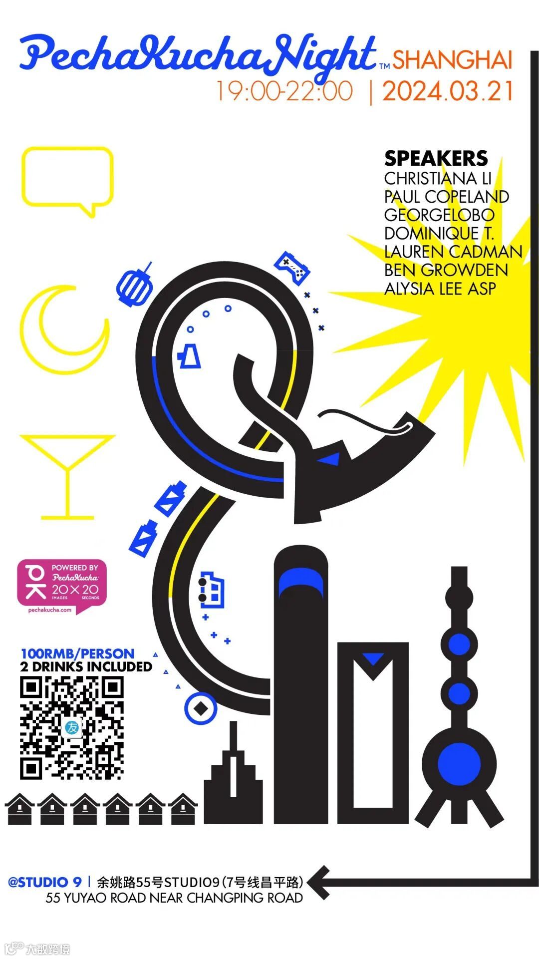 George Lobo 自2019年起在上海组织 PechaKucha 之夜,并于2023年与之前经营东京分会的 Jean Snow 合作。他们被对创造力和讲故事的热情所感动,去年他们组织了5场活动,其中4场在STUDIO 9 举行。