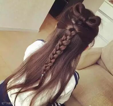 最后再绑上蝴蝶结布圈等发饰就完成了
