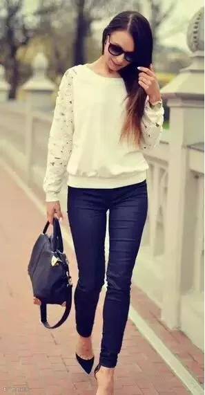 黑色九分裤是非常基础的单品,和充满女性化、梦幻感的蕾丝、雪纺、华丽刺绣等可以很好的兼容,让人感觉不会太过甜腻。马上关注微信:dddapei 和你一起讨论服装搭配、时尚配饰、美容健康、潮流资讯!