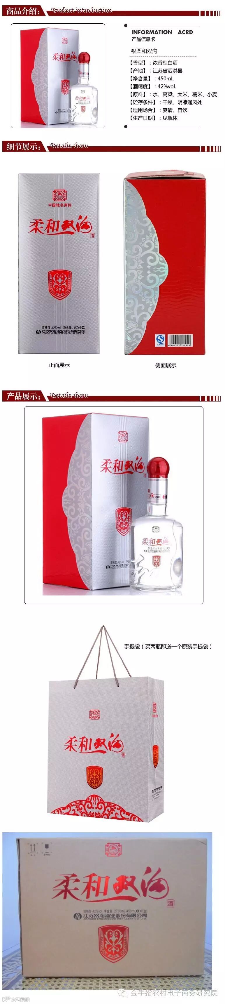 商品名称:双沟柔和银五星42度450ml浓香型白酒正品双沟大曲