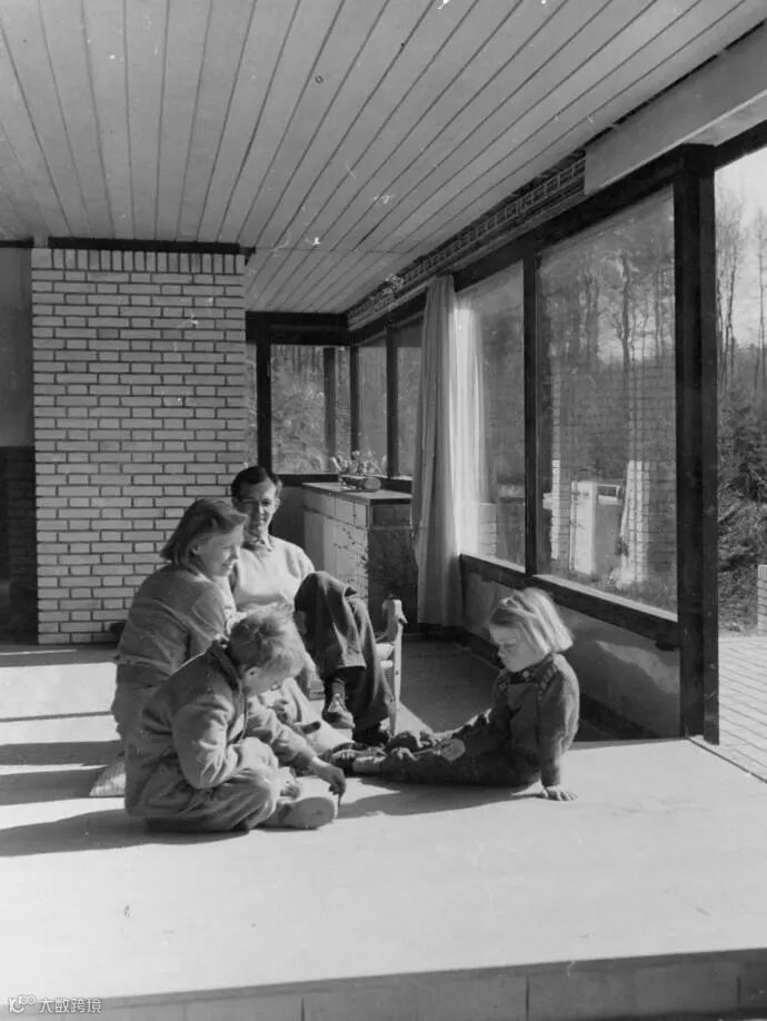 Jørn Utzon 及其妻子 Lis Utzon 和他们的孩子们在自己的家中,位于丹麦的 Hellebæk House,建于1952年 —— 图片来源:The Utzon Archives / Utzon Center ©