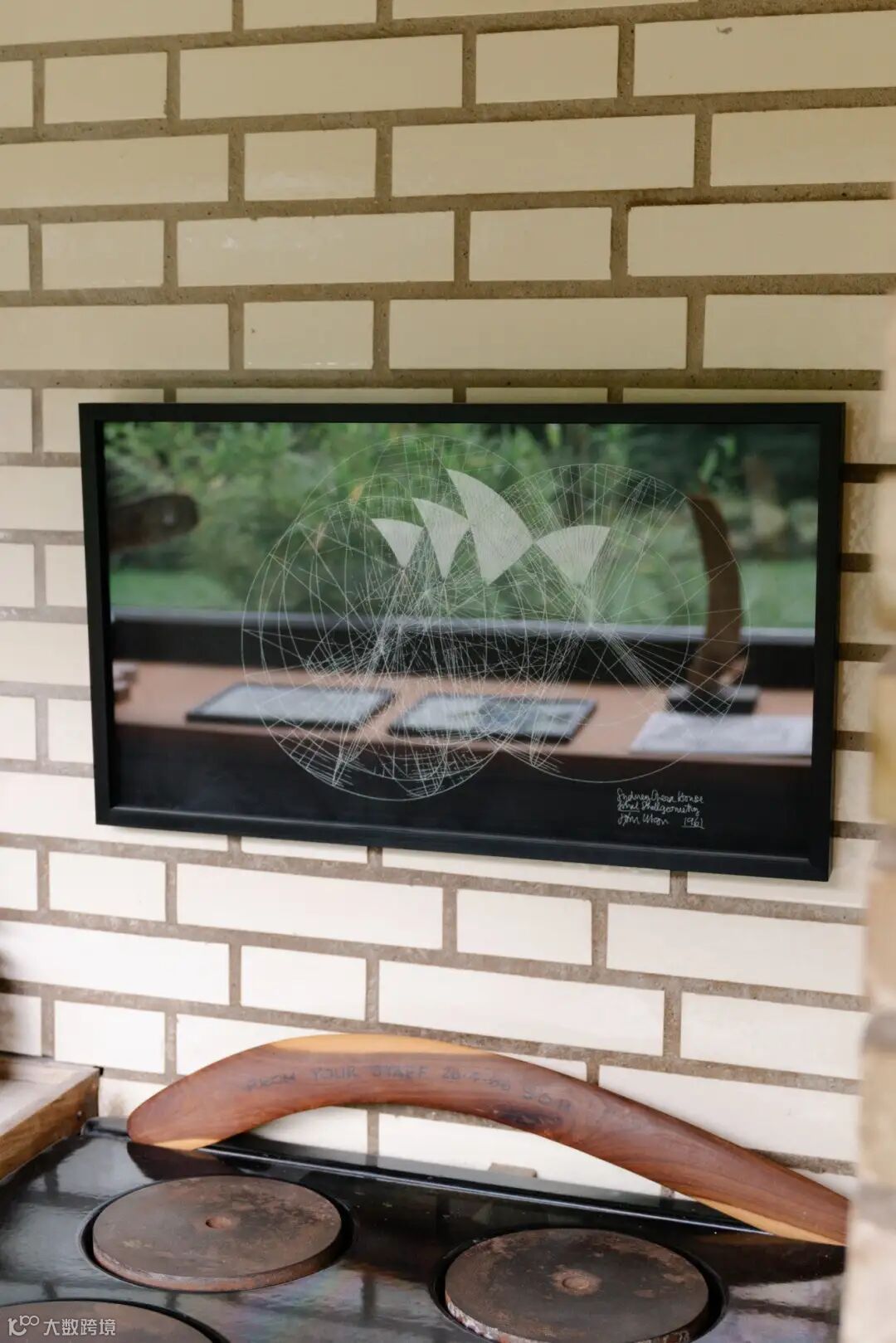 此回旋镖是1966年歌剧院项目员工送给 Jørn Utzon 的离别礼物,他们希望他能如同回旋镖一样回到澳大利亚