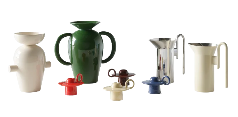 Momento 全系列皆为简单实用的日常用品,旨在丰富每个人的生活和日常仪式,包括一款水壶、一款烛台和两款花瓶,每个作品都巧妙地融合了 Hayon 的雕塑语言和标志性大胆色彩。