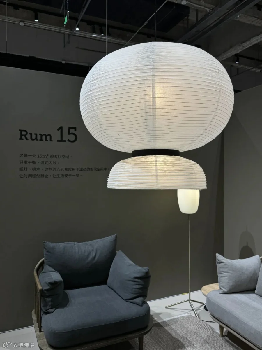 这是一处15平方米的客厅空间,轻重平衡,温润内敛。纸灯、桃木,这些匠心元素应用于流动的现代空间中,让时间顿然静止,让生活安于一室。