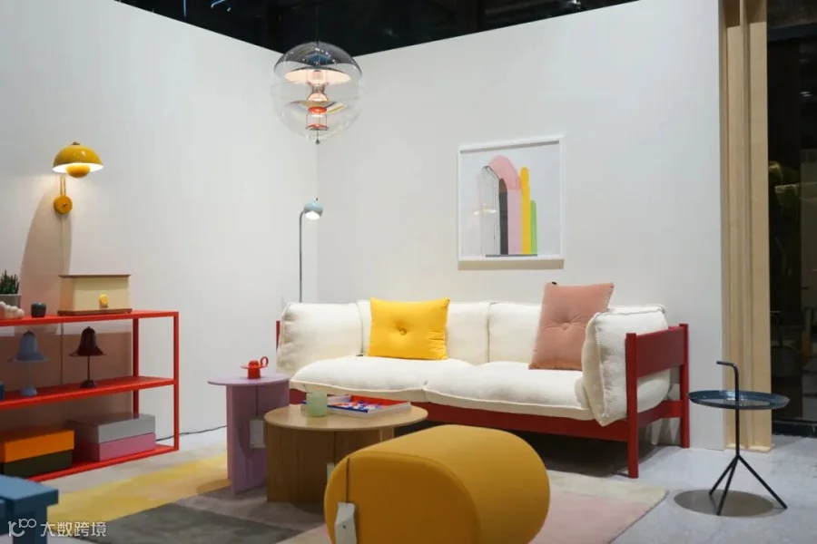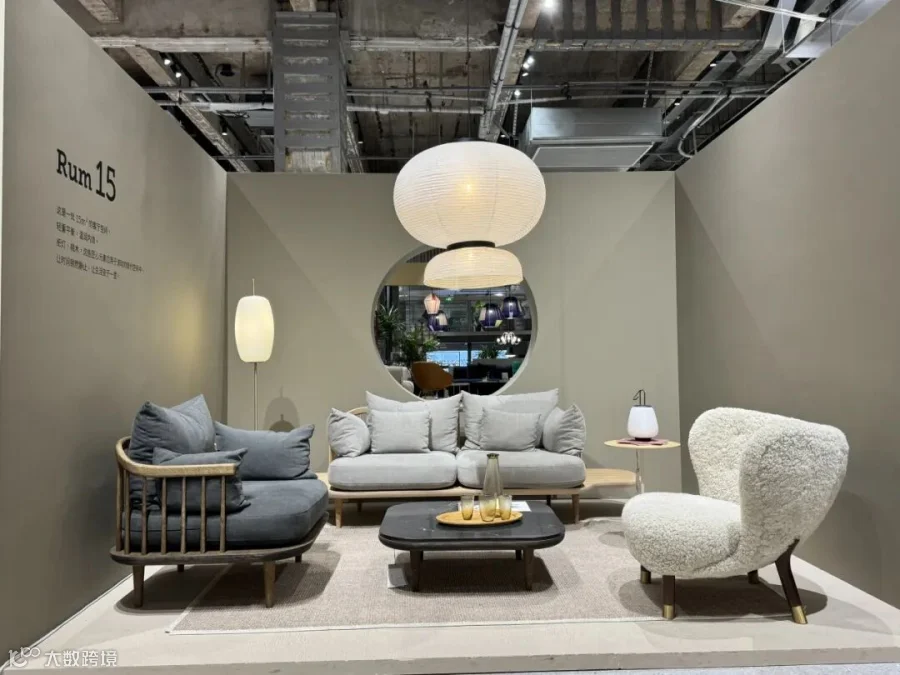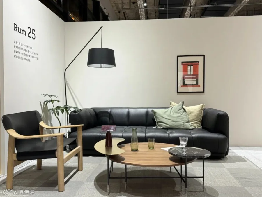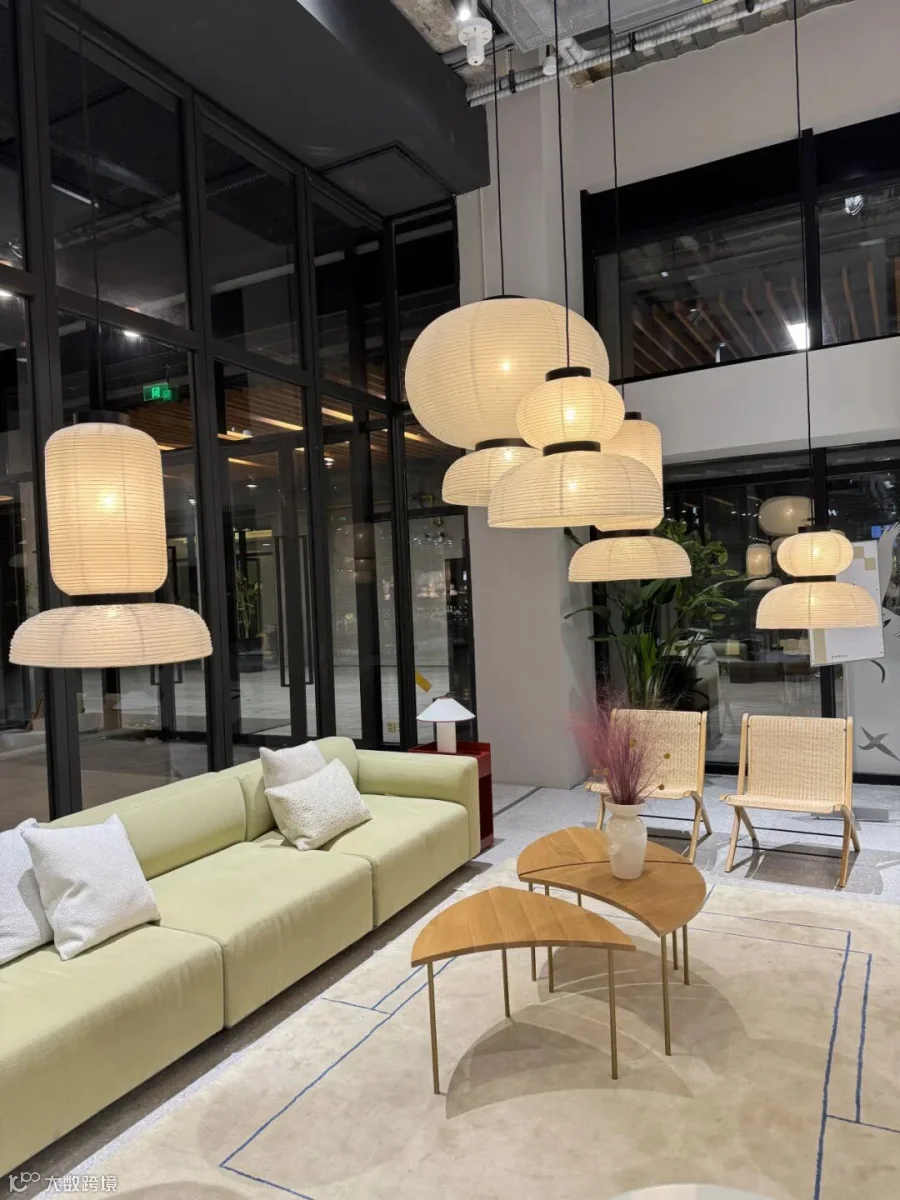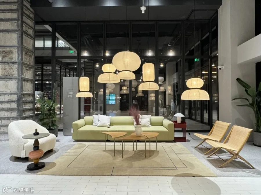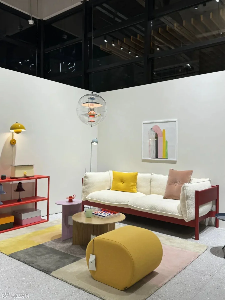 休闲区域的 &Traditio Inland 沙发,以简约利落的轮廓勾勒舒适轻快的质感,一角的 Verpan Fun 落地灯将光线以趣味横生的层叠方式进行漫射,趣味横生,将空间场景装点。