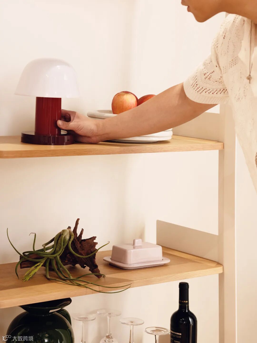 无线设计让它可随心安置于边几,白日里与浅灰皮革座椅静默对话;入夜点亮,朦胧光晕便为每一次“坐”的时刻,笼罩上静谧的仪式感。