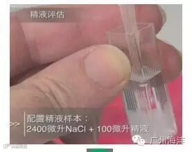 测样本必须按比例稀释,取 2.4ml 稀释液和 100um 精液注入比色皿,