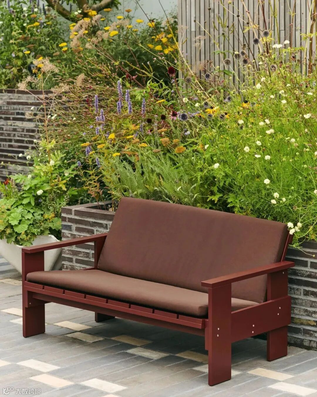 Crate 木板条系列由实心松木制成,覆以水性涂料,同样配有对应设计的 Crate Cushion 坐垫,增加舒适性。