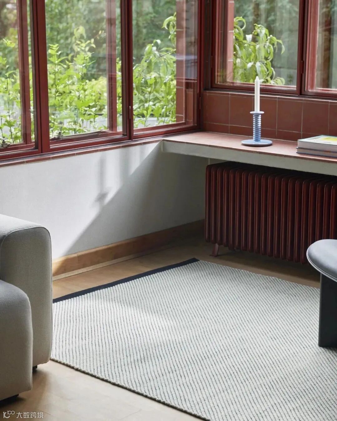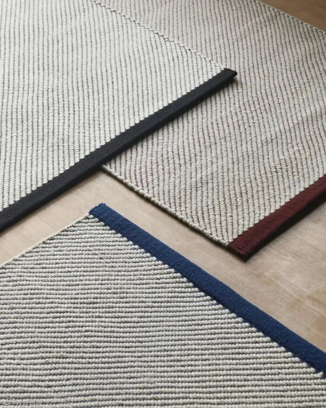 全新地毯 Bias Rug Tint 采用双色编织效果,由奶油色的纬线编织到有色的经线中,微妙的对角线纹理被两端的纯色带所装饰,从而打造出一款多用途的地毯,提升室内环境的地面空间质感。