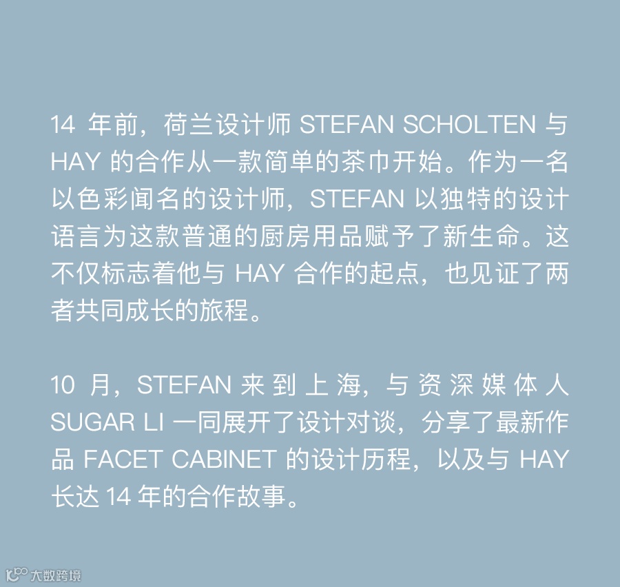 今年秋季,Stefan为HAY设计了 Facet Cabinet 多功能储物柜。这款柜子不仅仅是一件储物家具,更是设计和功能结合的体现。Facet Cabinet的名字来源于它独特的多面切割设计,赋予了这件极简作品更具雕塑感的外观。