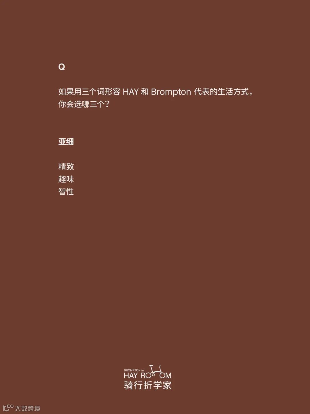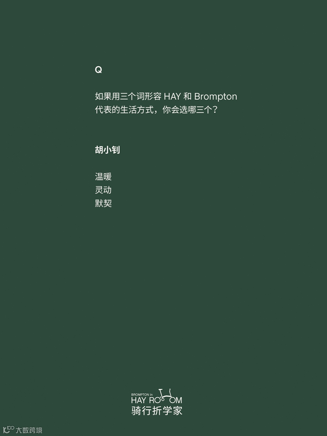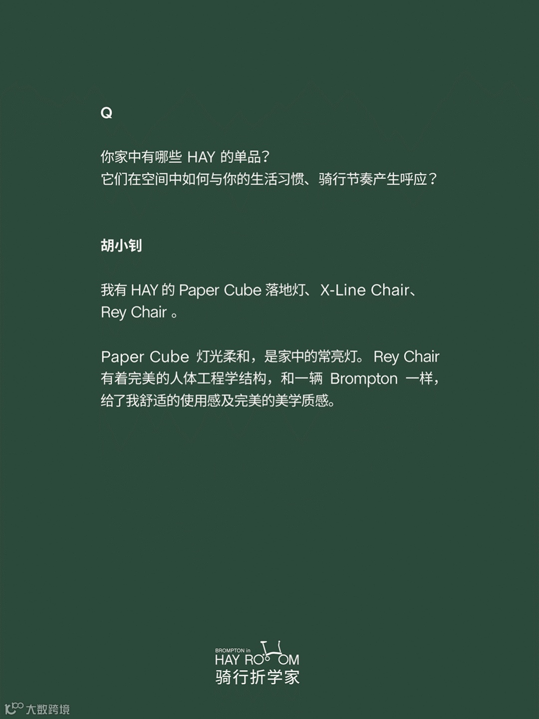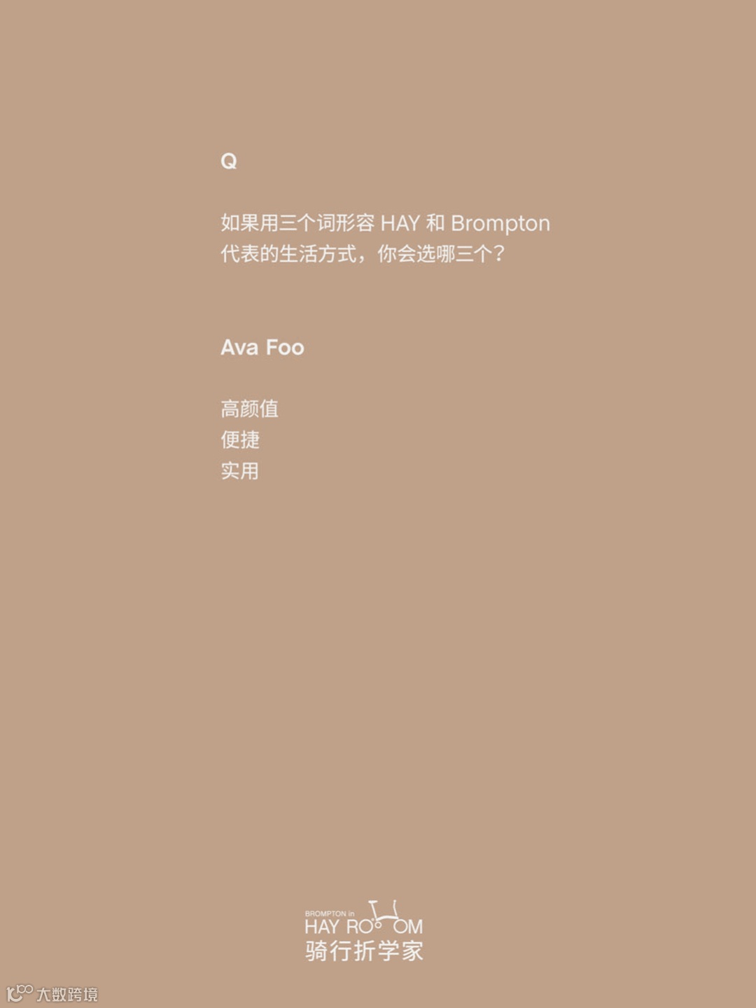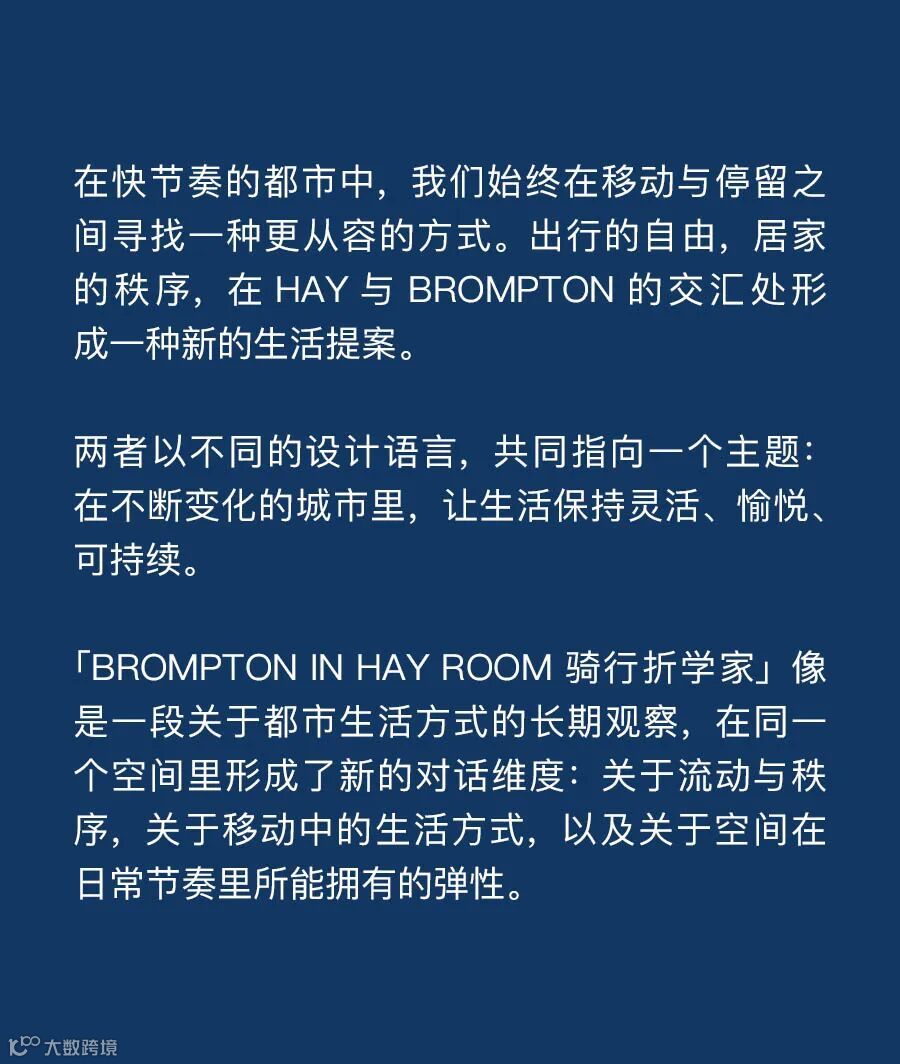 在城市中,人们需要一种能够自由伸缩的生活方式,可以快速移动,也能在需要时停下来。在折叠与展开之间找到属于自己的节奏。HAY 与 BROMPTON 都旨在打造一种更贴近现代生活的方式,在有限空间与快速节奏中创造更多可变与可能性。