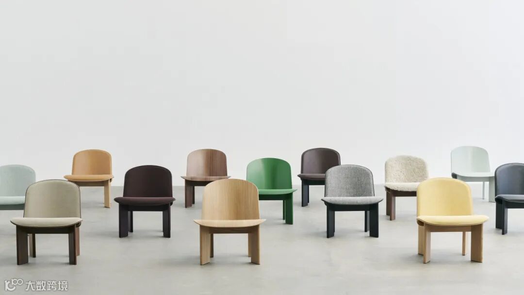 前饰面料更具有改变座椅形象的潜能。Chisel Lounge Chair 同样具有广泛的软包面料选择,比如防污且耐用的羊毛混纺面料Hallingdal 65,用不同颜色纱线混织而成的面料Remix,便于清洁皮革面料 Sense Leather 等,配以 HAY 的别致色系,交错出差异化的空间搭配。