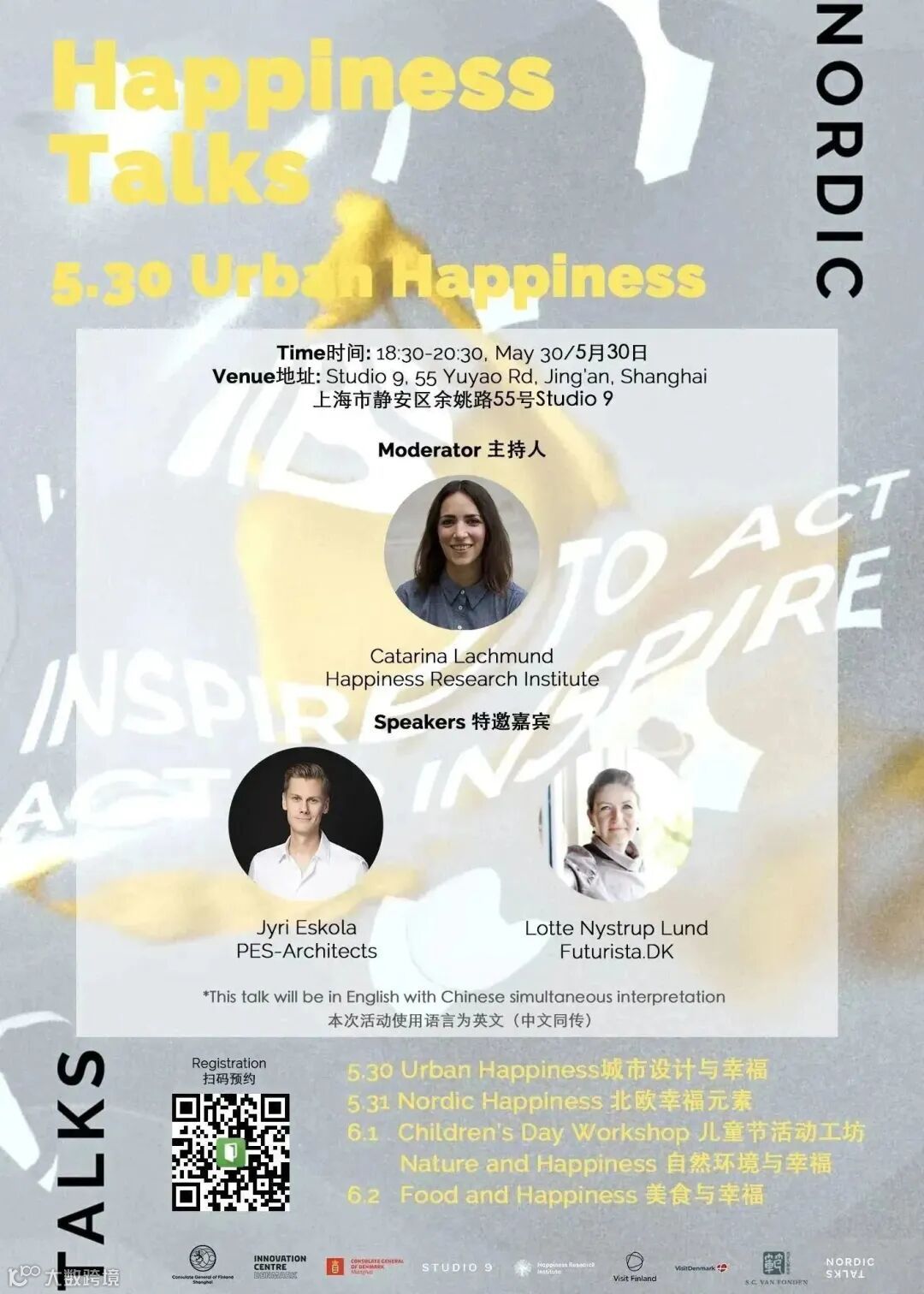 为了探索“幸福”,STUDIO 9 同芬兰驻上海总领事馆、丹麦科技创业中心和丹麦驻上海总领事馆一起,在初夏之际,带来一系列“幸福”主题活动,将北欧的幸福感传递到你的面前。