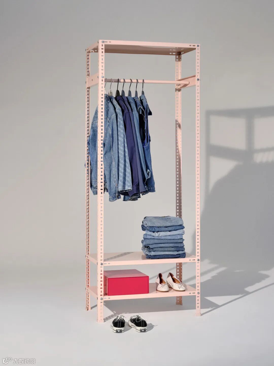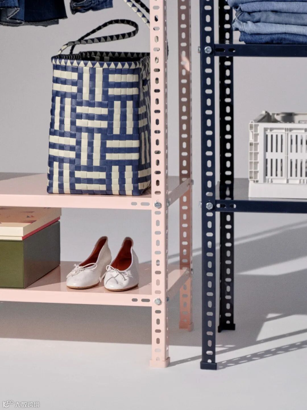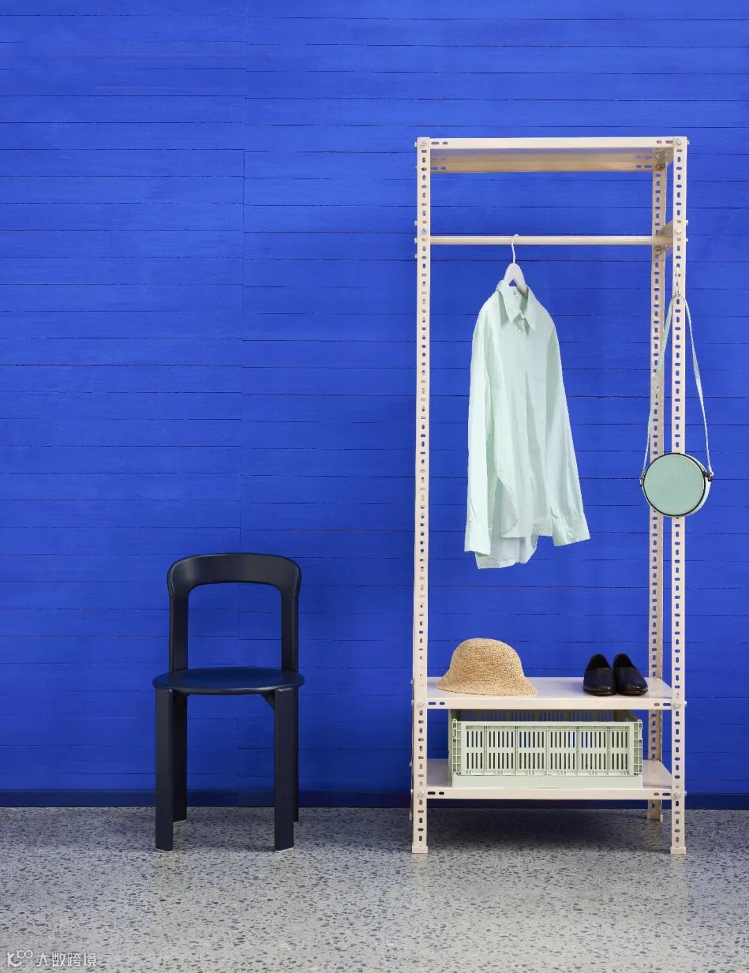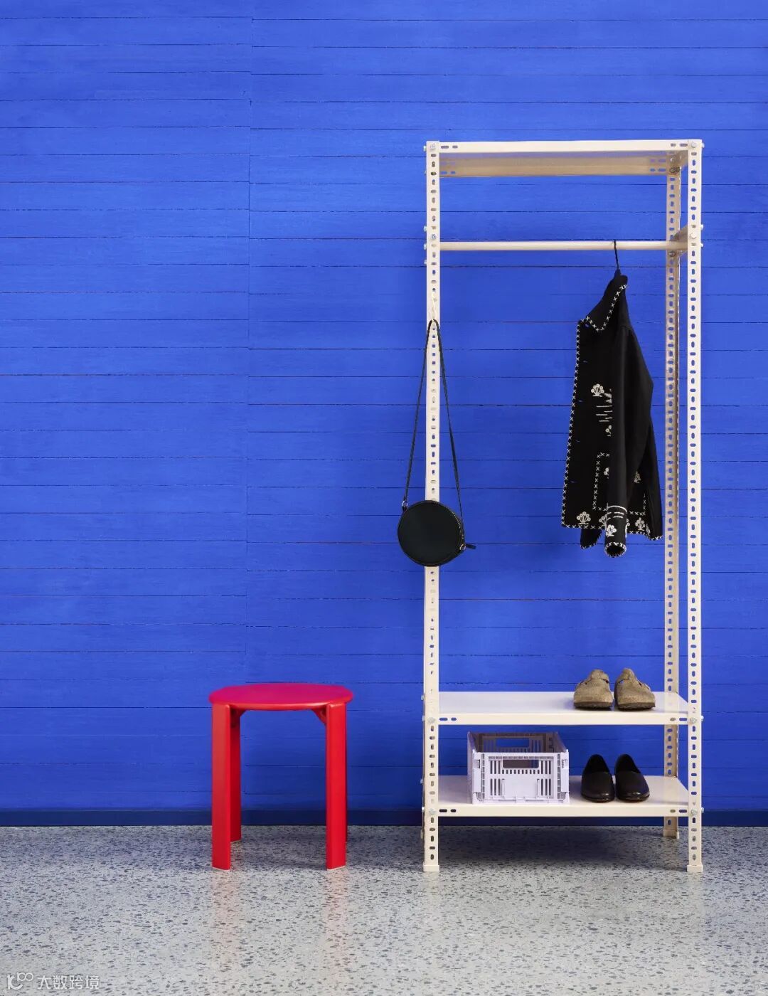 HAY Shelving Unit 适用于厨房、卧室等多样空间,便于存放多种小物件;新加入的 HAY Wardrobe Unit 则是一个小型的简易衣柜,适用于紧凑的居住空间,轻松悬衣物及包袋。