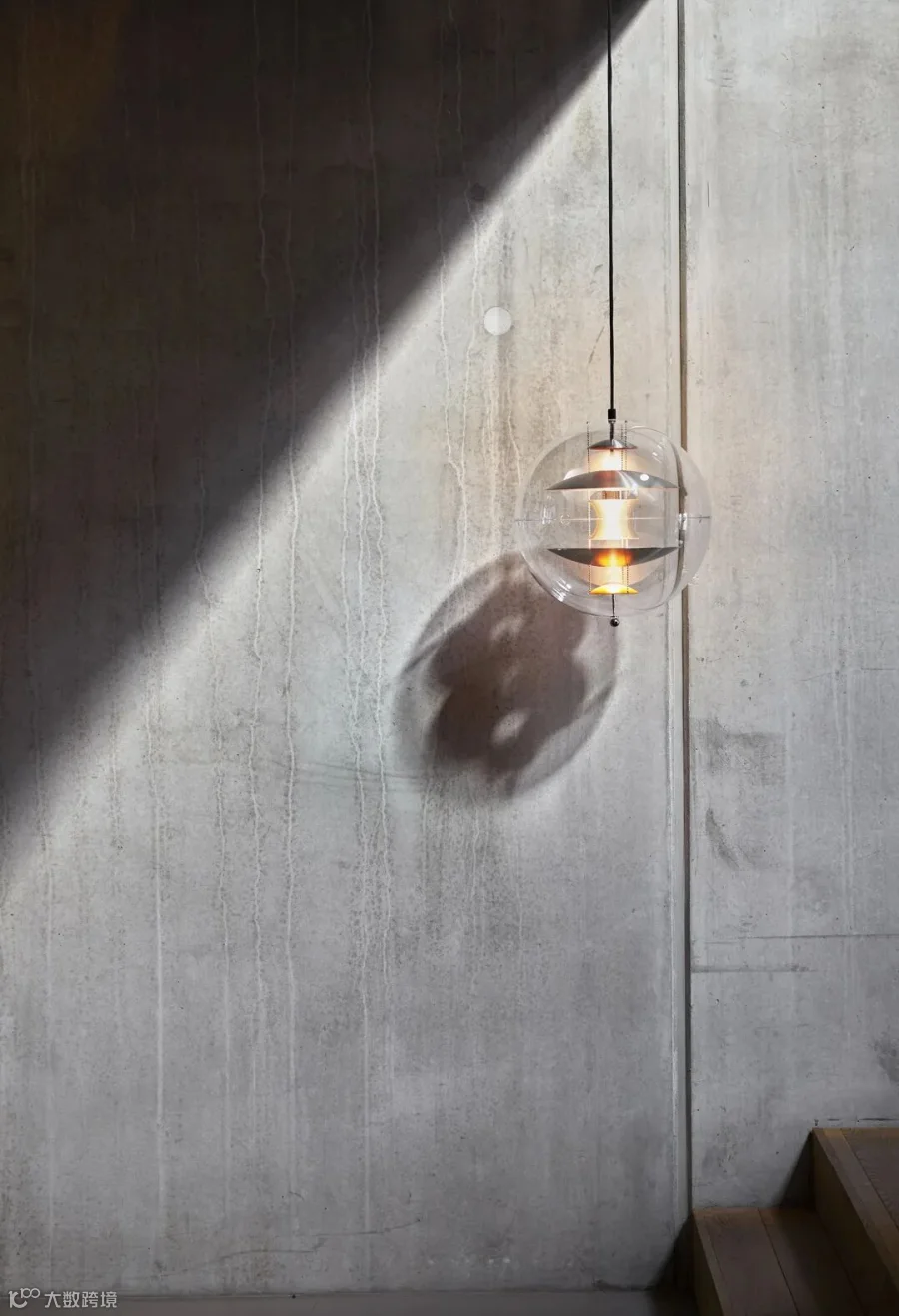 VP Globe 金属 + 亚克力的材质组合,充满那个年代对工业材质和几何价值的狂热迷恋,工业美学强调的视觉感受,让这盏灯拥有了照明之外的属性特征。