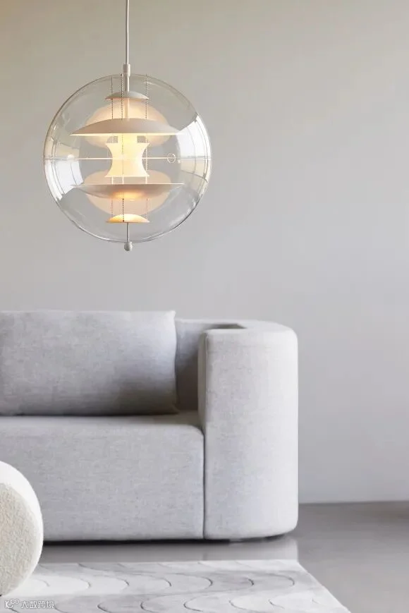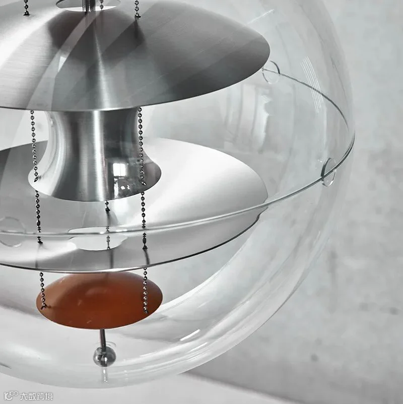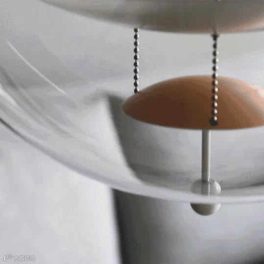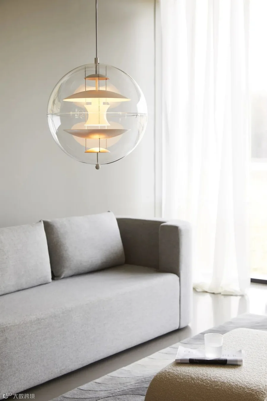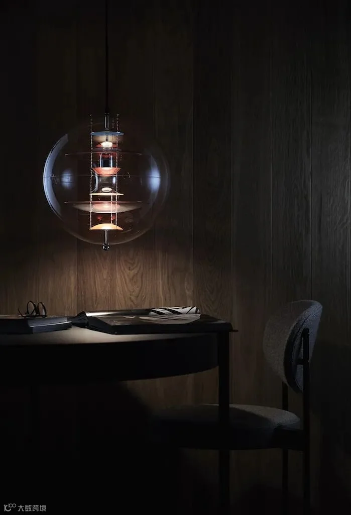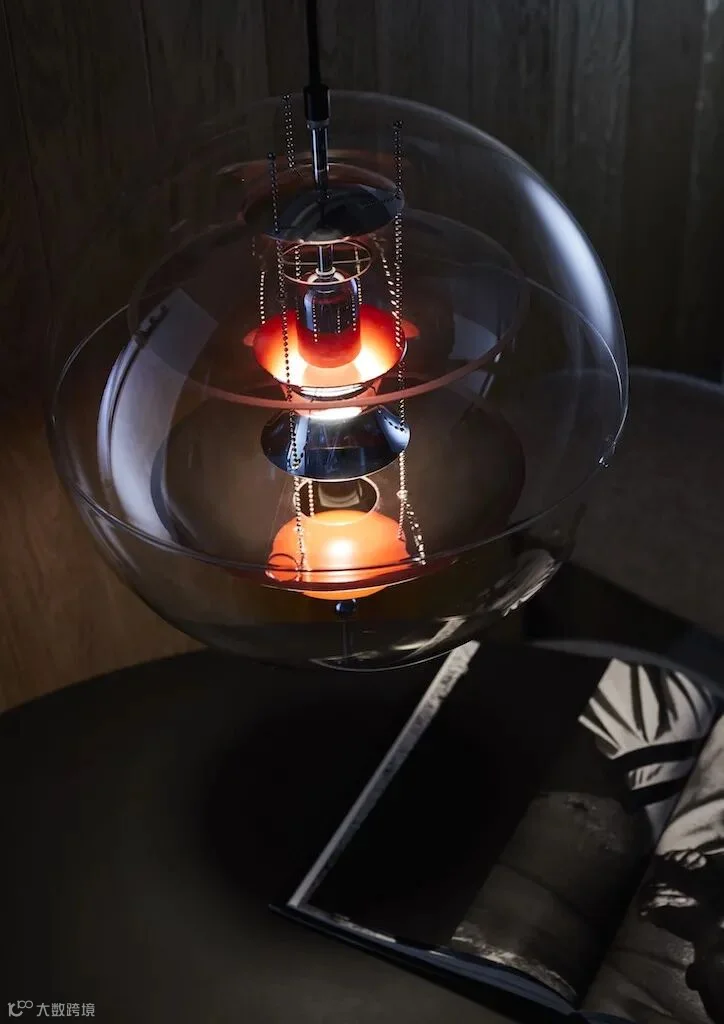 Panton 一直是色彩和材质的先行者, VP Globe 的分层设计和亚克力球形灯罩是他对于工业材质的巧妙运用,塑料金属片的光泽与星体璀璨的视觉特点相联系,给人留下深刻的印象。