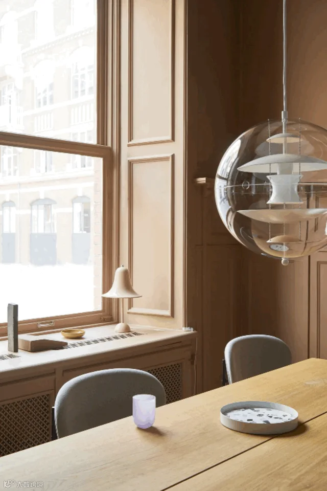Warm Peach 的“限定”一方面来自 VP Globe 诞生之初的光之“能量”:是 Panton 在某个黄昏里的温柔触动,是他花费数年时间重现这抹街灯柔光的不懈精神,是穿越半个世纪的光之力量。