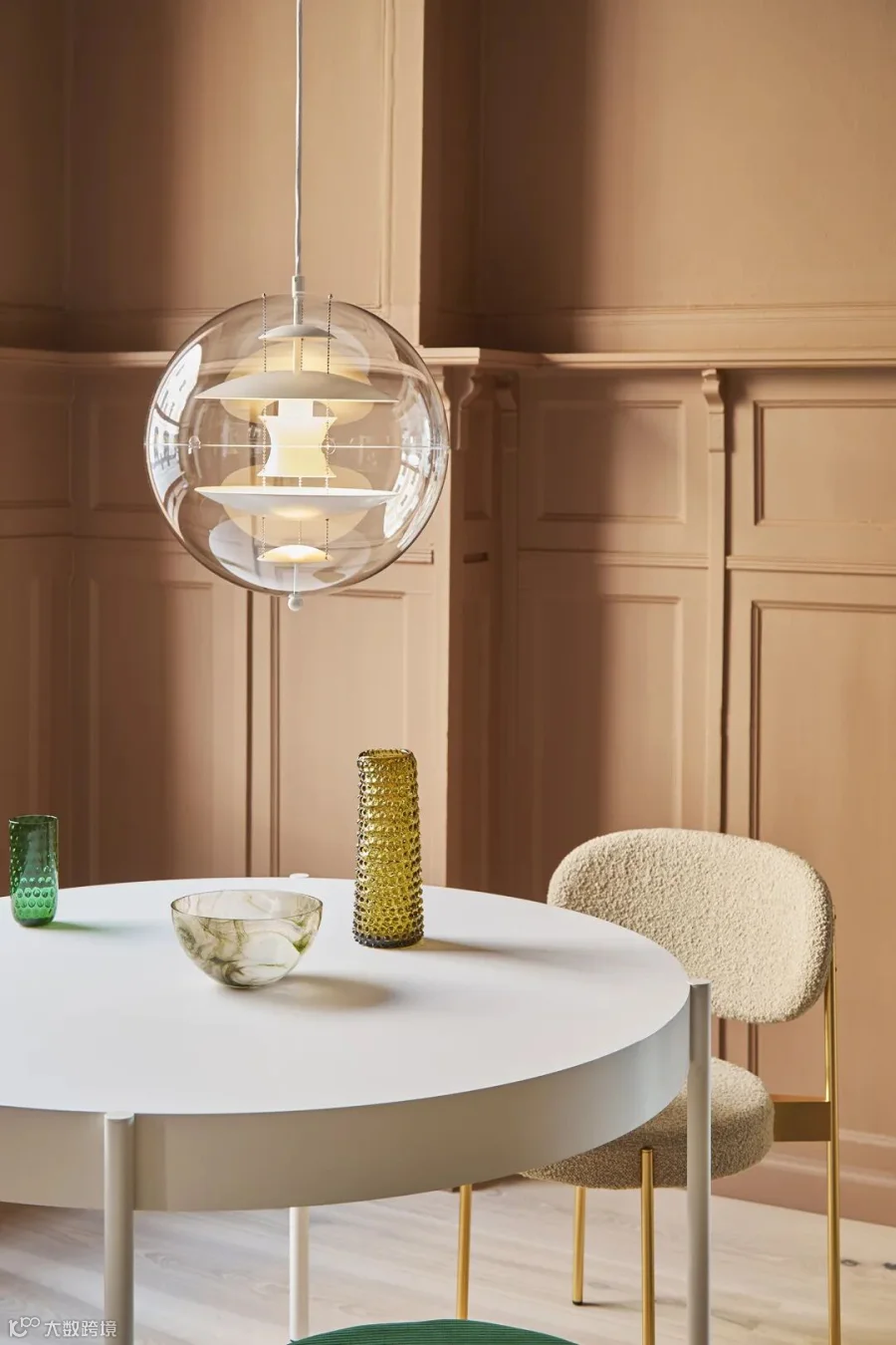 为了延续 VP Globe 的设计吸引力, VERPAN 一直在对其重要内核 —— 五片串联起来的异形反光罩片,进行设计创新,目前已经有多色金属、白/多色玻璃等一系列材质和颜色选择,也更适合多元化的现代空间场景。