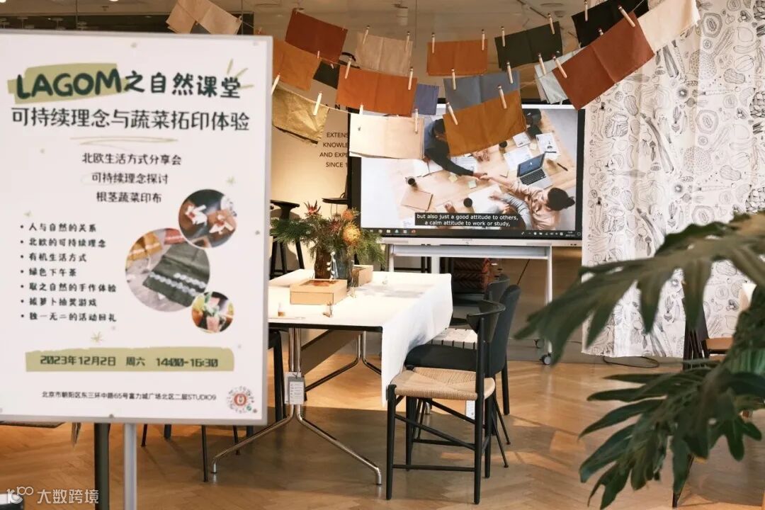 12月2日,北京的STUDIO 9举办了一场名为"LAGOM之自然课堂"的活动。参与者们有机会体验可持续理念的探讨会与蔬菜拓印活动。期间,大家不仅学到了北欧生活方式的知识和可持续发展的理念,还亲手制作了根茎蔬菜印布。这个活动为大家提供了一个创造性的机会,让他们亲身参与并体验可持续艺术与手工制作的乐趣。