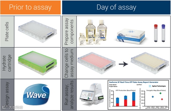 图2.安捷伦Seahorse XF实时ATP速率测定工作流程