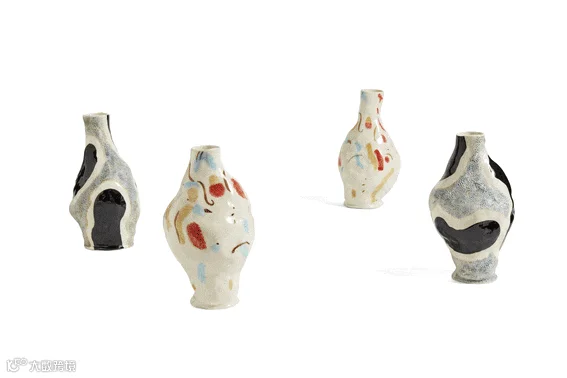 Jessica Hans Vase 与 Jessica Hans Shadow Vase 将艺术感与功能性合二为一,不均匀与不规则的形态脱胎于手工制作的工艺,保留着陶土自然的型态,设计师使用手绘的花纹和色彩创造出一个图形化、雕塑般的艺术品。
