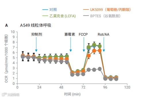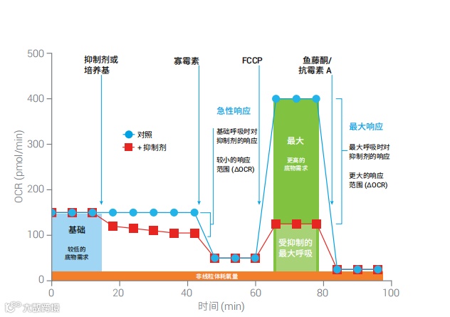 通过测试可以获得丰富的信息,因为所描述的设计可以提供基础呼吸数据以及基础底物需求条件下通路抑制的影响,同时还能表征通路抑制对最大呼吸的影响,反映在较高的底物需求下,细胞对特定代谢通路损伤的敏感性。