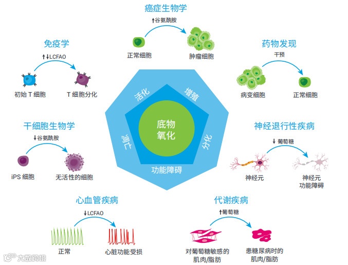 代谢是目前公认的在正常和疾病状态下影响许多重要细胞功能的关键因素[1,2]。通过对照实验确定底物需求可以为多个研究领域提供有用信息,包括癌症、免疫功能障碍、心血管疾病、神经退行性疾病和干细胞疾病模型中的药物靶标识别和验证[3,4,5]。