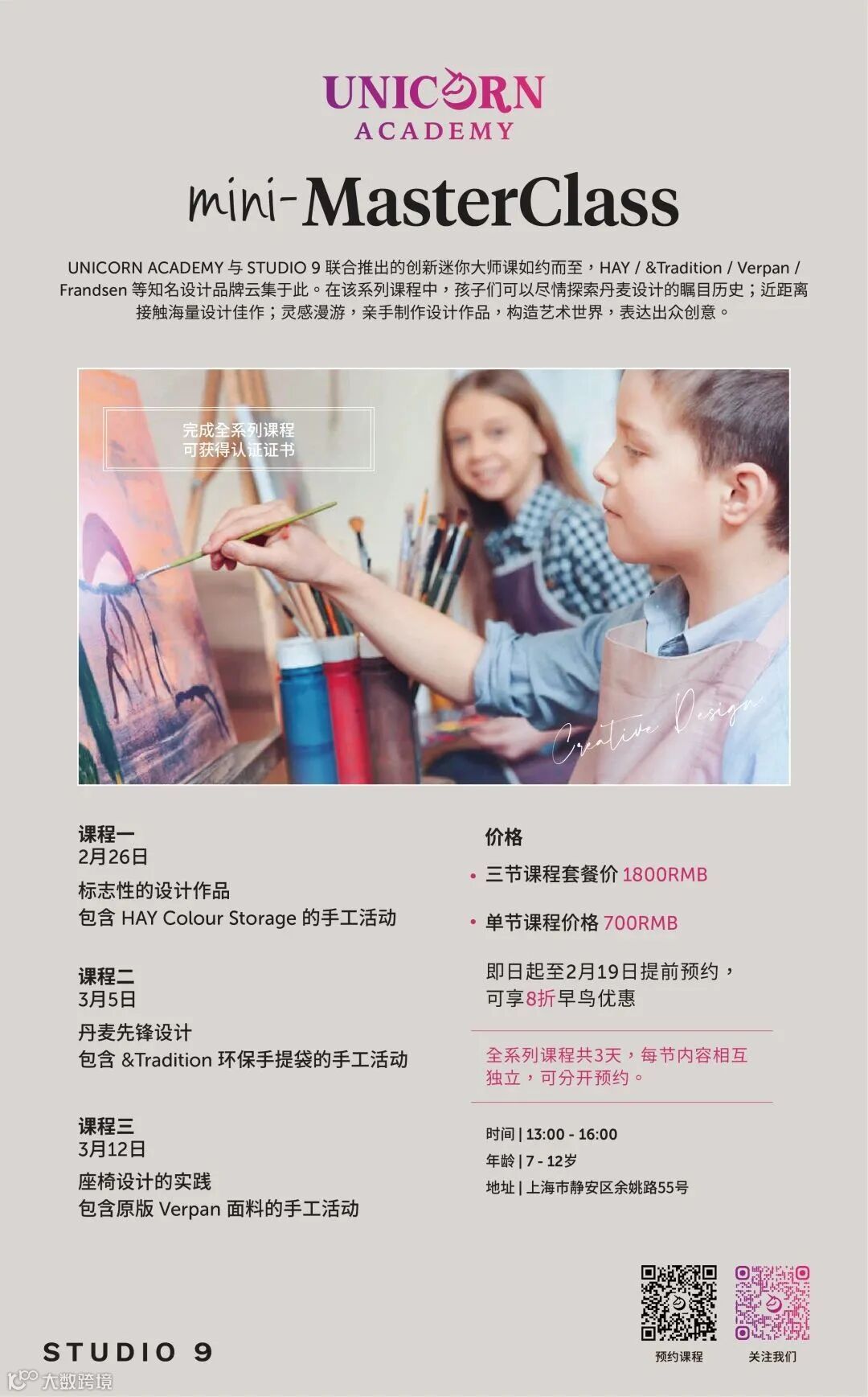 上个周末,由 STUDIO 9 与 UNICORN ACADEMY 联合推出的第一节迷你大师课刚刚落幕。