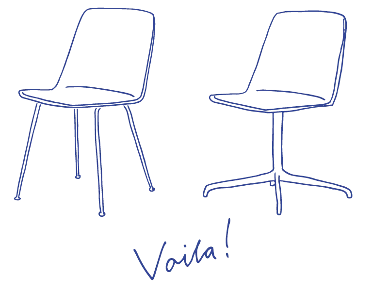 Rely 的可持续性理念还体现在多样化的选择上,为满足公共和私人空间的普遍化需求,提供广泛的色彩和软饰面的选择,椅腿组合也千变万化。