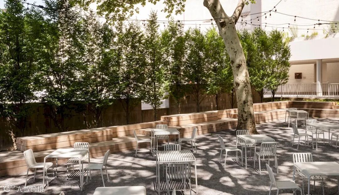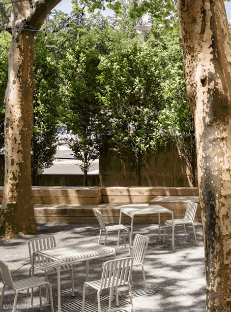 在花园内与绿树蓝天相映衬的是 HAY 的 Palissade 户外家具系列。满眼望去灰白色的 Palissade 桌椅为整个花园注入了新鲜的活力,也打造属于艺术人的休憩之域,提升博物馆的参观体验。