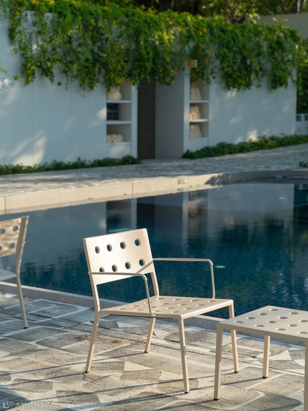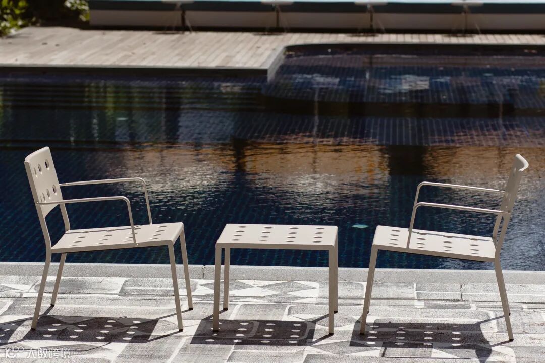 同样由设计师 Ronan & Erwan Bouroullec 设计,Balcony 系列在方形棱角的线条基础之上,添加多个圆孔,除加强结构稳定性外,更柔化了视觉画面,以更通透、轻盈的视觉,妆点户外空间。