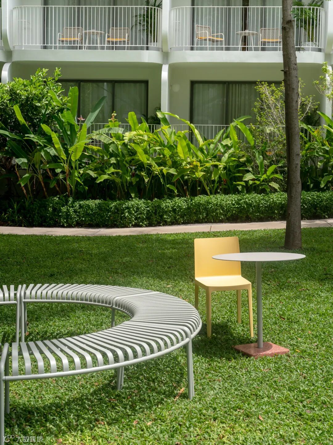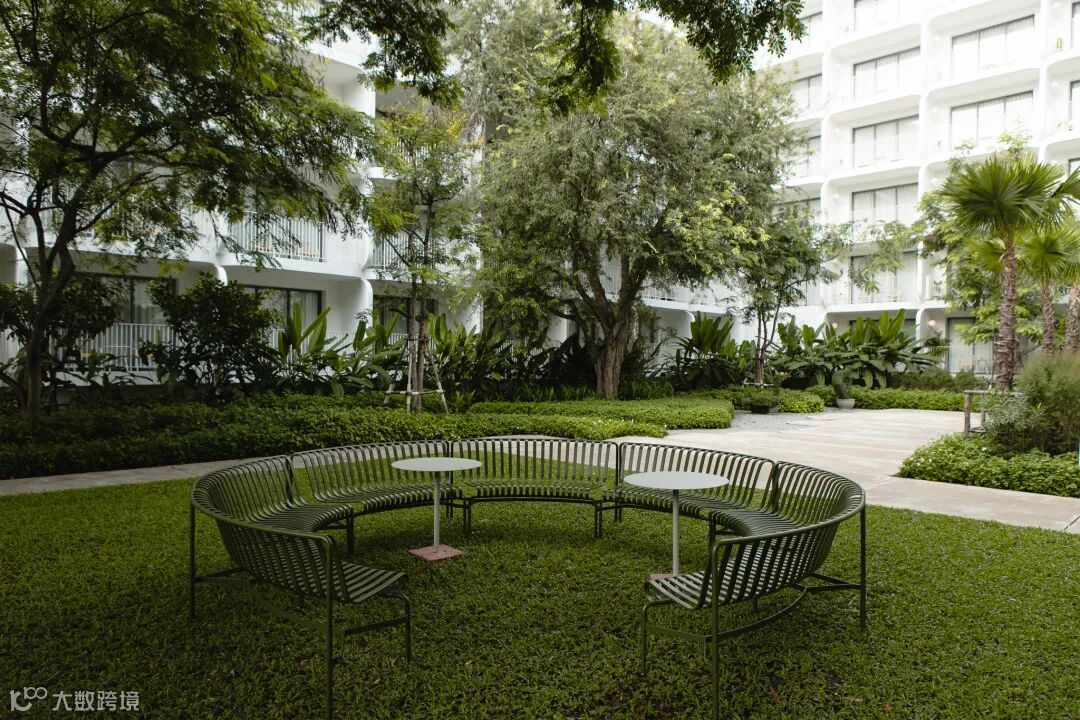 在酒店的草坪区,陈设了适合大型场地的 Palissade Park 和 Terrazzo 系列,为空间增添社交区域且舒适宜人。
