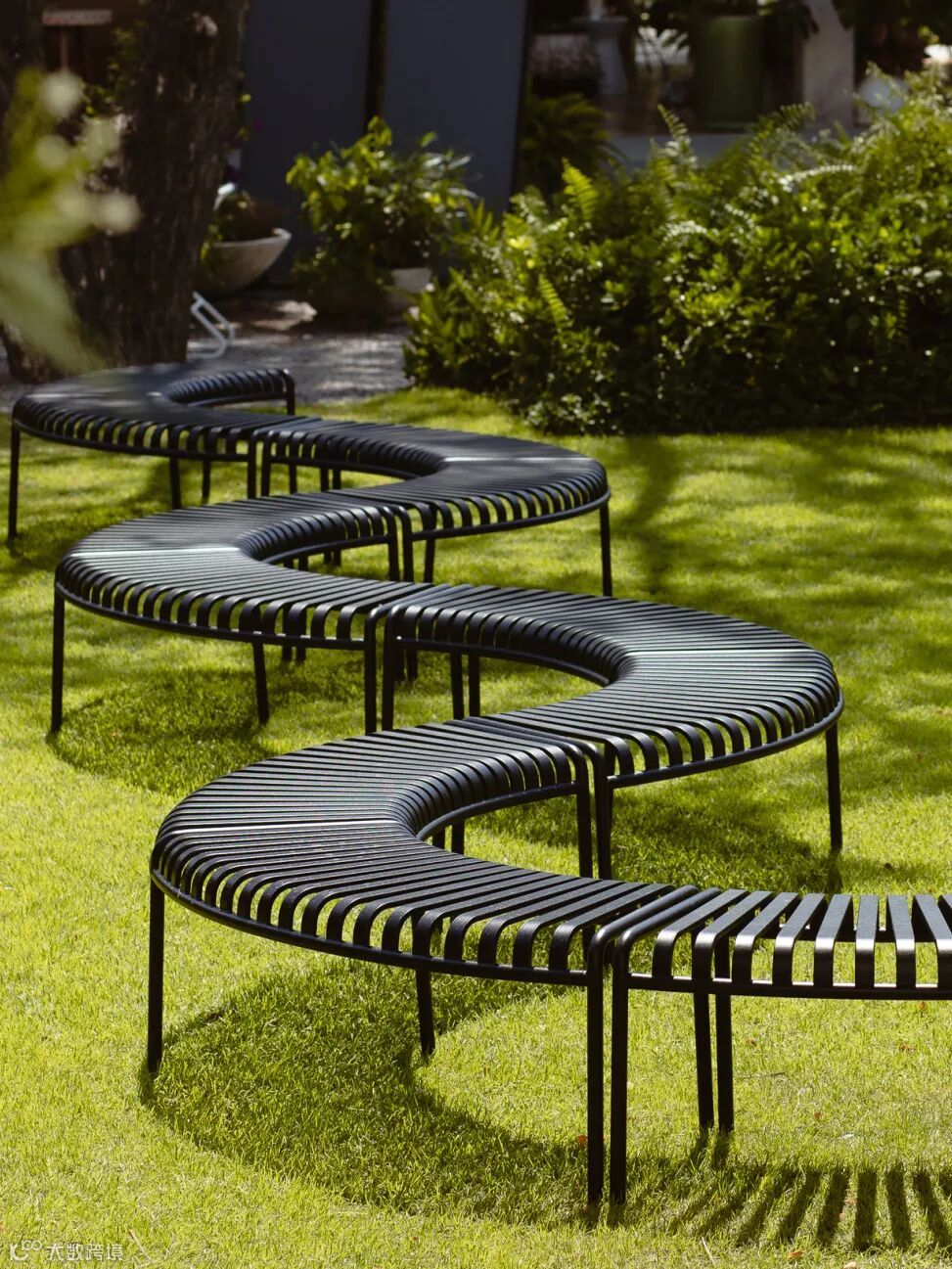 Palissade Park 是 Palissade 的延伸系列,延续相同的线条与轮廓 Palissade Park 更适合大场景,以向内或向外不同的圆弧无限延伸,圆滑的视觉效果为大空间草坪创造更多使用空间。