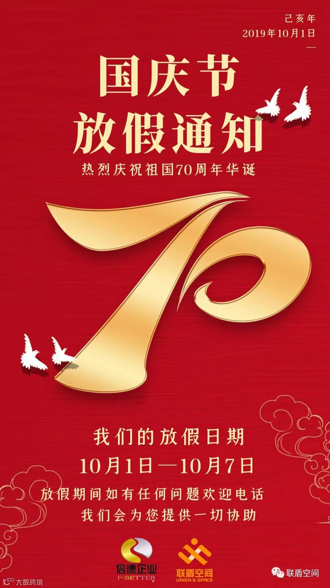 根据《国务院办公厅关于2019年度部分节假日安排的通知》,2019年国庆节放假安排如下: