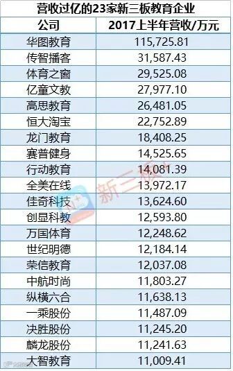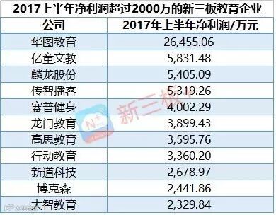 “新三板+”在统计过程中发现,2017年上半年净利润过亿的仅华图教育一家,公司主营业务是职业教育培训服务,主要是为大学毕业生和相关从业人员提供各类招录考试的考前培训。通过直营模式开展业务,加强渠道整合,强化师资队伍,加大产品研发力度,进一步完善在移动端的布局,目前公司的收入来源主要为线下面授培训。公司全国布局积极推动业务下沉,也加速了在线产品整合升级,所以实现业绩的稳步增长。