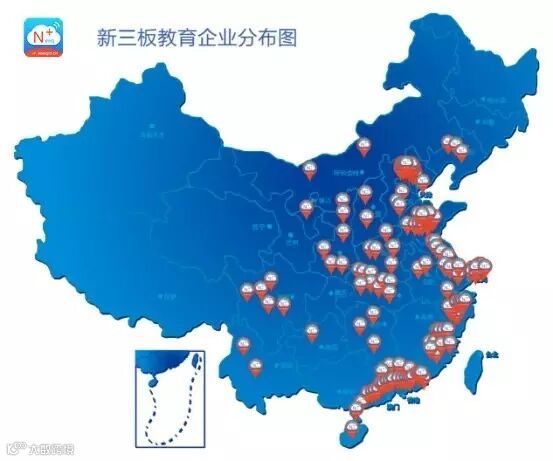 而从地区分布上来看,新三板教育企业分布最集中的地区为北京、广东和上海,企业数量分别达到了86家,32家及18家,其次为江苏和浙江,分别达到11家和10家。