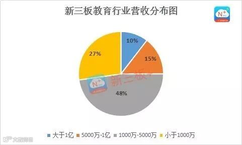 综合这222家三板教育企业的业绩状况,“新三板+”发现有23家营收过亿,32家企业营收在5000万到1亿之间;105家营收在1000万到5000万之间,占比48%(剔除未披露半年报企业);营收小于1000万以下的企业有60家。