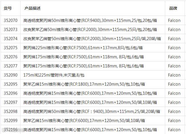 FalconTM离心管无毒:所选树脂均通过美国药典(USP)的一系列严格毒性检测,gamma;射线或E-Beam灭菌,无热源 BD FalconTM离心管低蛋白结合:满足生物分析级要求,生物及物理性质一致,在苛刻的研究条件具有无可比拟的表现,程度的降低实验室用品引起的干扰,如蛋白结合。