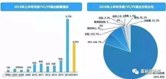 2016年上半年国内上市企业达61家,全球范围内总的有82家中国企业上市,居全球之首,而股权投资机构支持上市的企业为48家,实现退出的机构有146家;而在2015年,股权投资机构支持上市的企业多达172家,实现退出的机构有580 家。