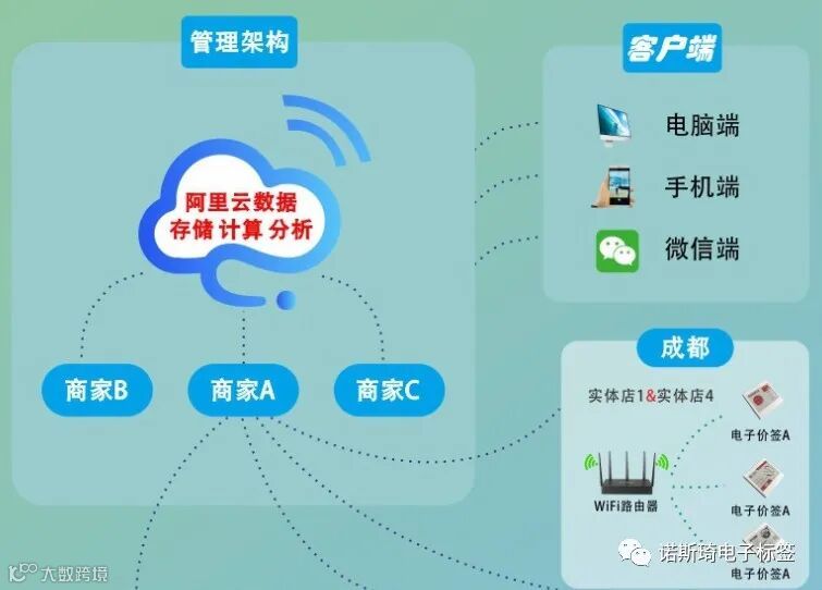 电子价签采用成熟的云架构和自主开发的领先技术,可以定期同步第三方数据,实现商店的远程管理,并实时更新价格。