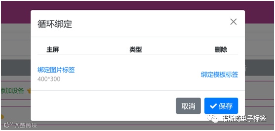 进入首页-设备管理点击:循环绑定 弹出下列框注意更新周期设置,每到下一个更新周期才会显示下一张标签信息。