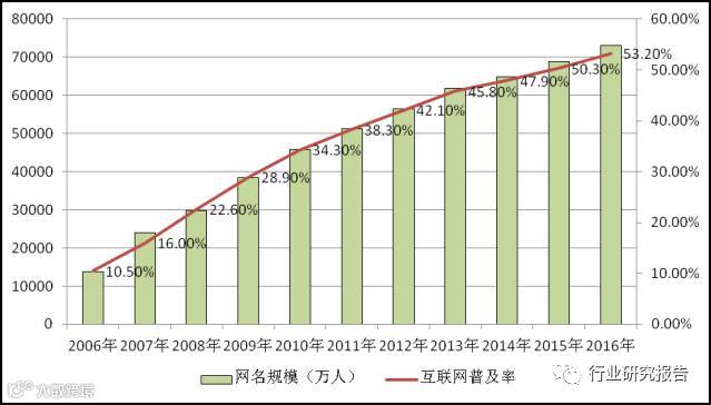 截至2016年12月,我国网民人数达到7.31亿,全年新增网民4299万人,互联网普及率达到53.2%,较2015年提高2.9个百分点,经过了十年的高速增长,目前增长率已经趋于稳定,这为游戏行业的稳定发展和消费群体(玩家)提供了基础。